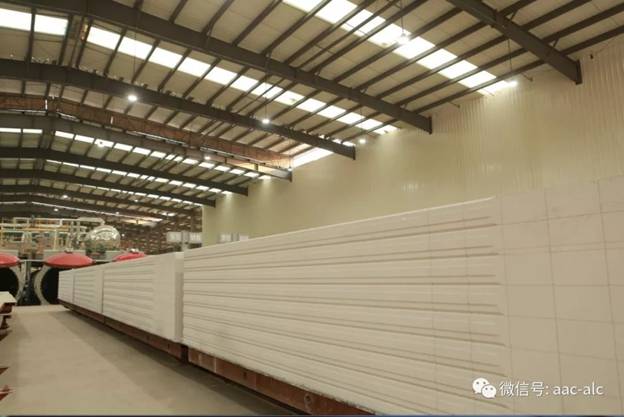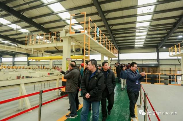 與會(huì)嘉賓參觀生產(chǎn)線——濰坊特鋼集團(tuán)有限公司年產(chǎn)30萬(wàn)m³砌塊-板材項(xiàng)目,該生產(chǎn)線采用東岳機(jī)械全套加氣設(shè)備,獲得一致好評(píng)。