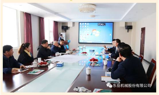 參觀后,公司副總裁鄧奎先生對(duì)東岳機(jī)械目前發(fā)展?fàn)顩r、市場(chǎng)情況進(jìn)行了詳細(xì)介紹,技術(shù)研發(fā)中心分別從工藝規(guī)劃布局、機(jī)械設(shè)計(jì)、電氣控制方面做出了詳細(xì)匯報(bào)。湖南飛山奇集團(tuán)李林輝董事長(zhǎng)、長(zhǎng)樂建材陳時(shí)勇總經(jīng)理肯定了東岳機(jī)械近年高速發(fā)展的成果,希望雙方在未來有更加深入的合作!